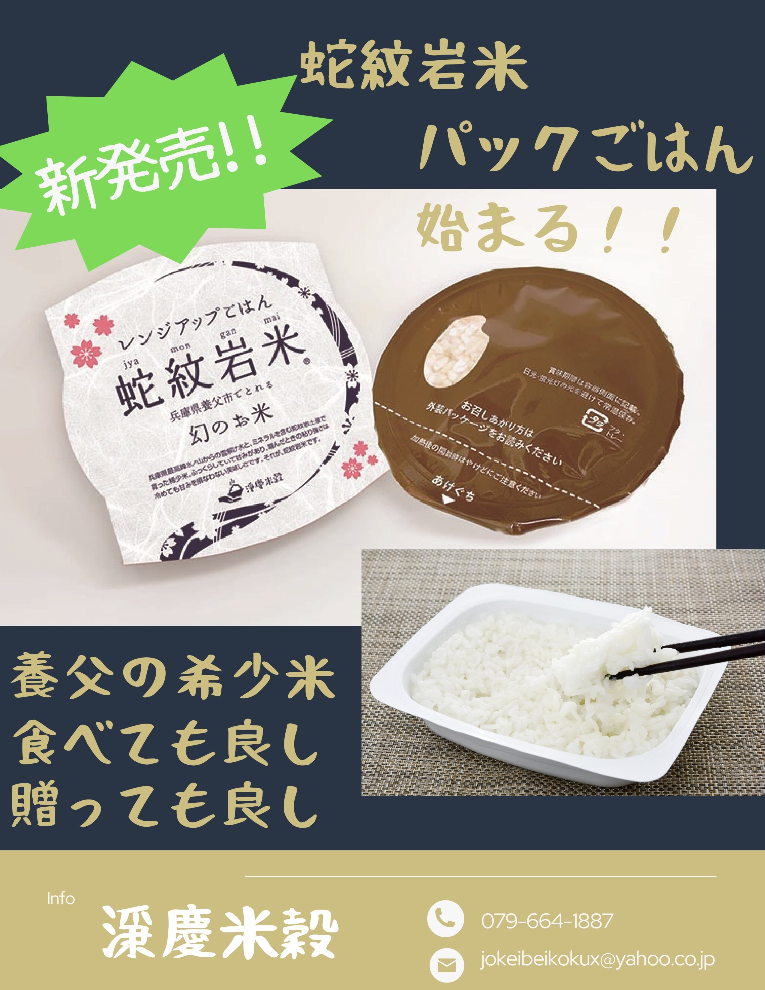 自然豊かな養父市で生産された、希少な蛇紋岩米がついにパックごはんとなって登場です! 初のこの新商品を、ぜひお試しください。